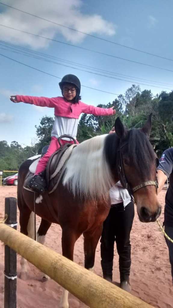 Com o tempo, Maria e seu esposo foram percebendo que sua filha não se movimentava como outro bebê da mesma idade. Isso fez com que eles procurassem outro médico, que confirmou a paralisia cerebral. “A parada respiratória afetou a coordenação motora. Hoje, aos sete anos, ela fala normal, escreve com alguma dificuldade, especialmente quando se trata das letras S, C e o G. Faz acompanhamento com equipe multidisciplinar (fisioterapeuta, psicólogo e terapeuta ocupacional) desde 1 ano de idade, além de praticar atividades como Equoterapia, por exemplo. Minha filha é muito inteligente e está se desenvolvendo muito bem”, afirma.